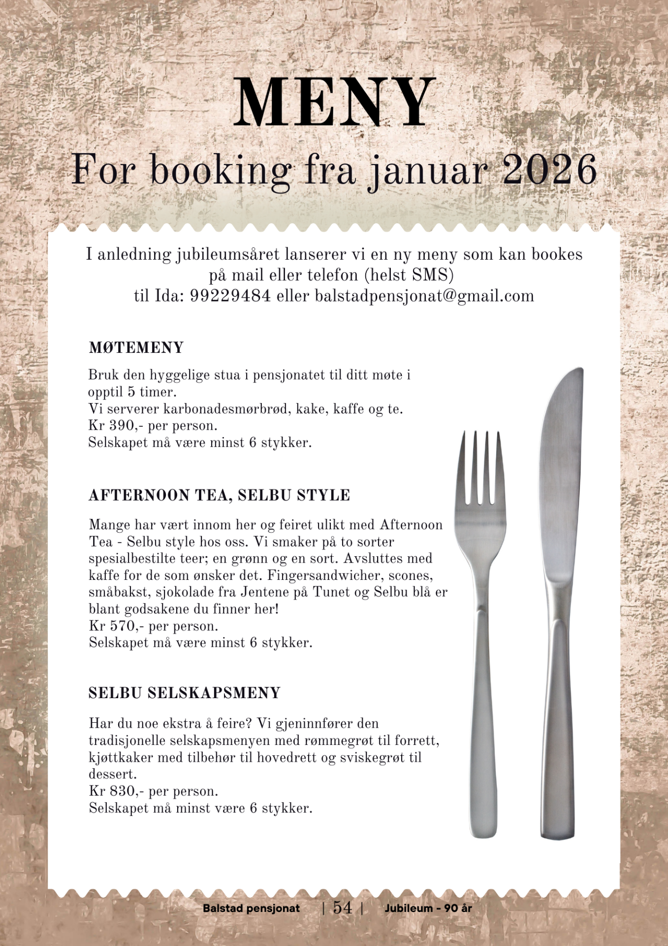 Kr 570 per person. Minst 6 personer. Bookes på mail eller SMS til Ida. Velkommen!